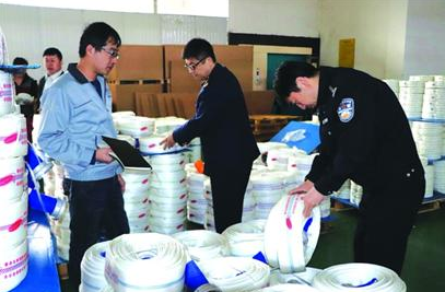 在思源路一家消防設備有限公司內,查看組細心查看廠家出產的水帶,并向廠家負責人了解消防產品出產中運用的材料,讓負責人出示消防產品認證證書、資質等有用證件。在高新區的消防器材銷售點,查看組查看了銷售點所運營的滅火器等消防產品是否為冒充偽劣產品、有關產品同意文件及相關證書是否合法有用,產品一致性是否契合要求,有無未經答應擴大運營范圍以及運營“三無”產品等情況。